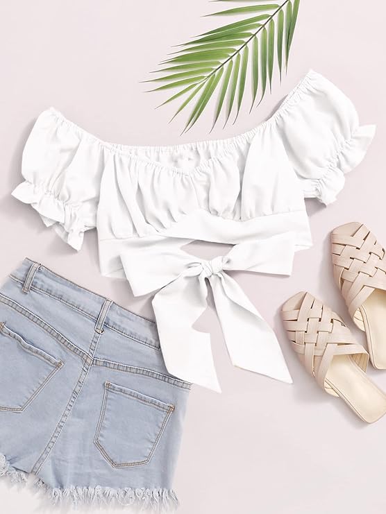 Women's & Girls' Tied Hem Puff Sleeve Slim Fit Crop Top