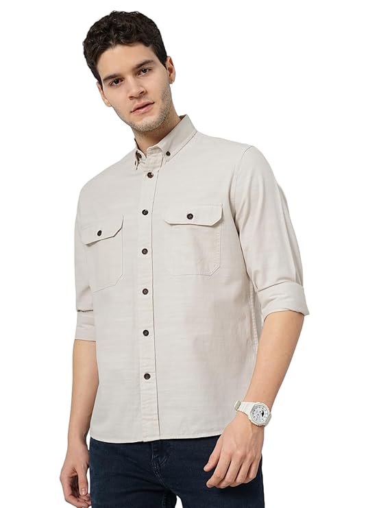 Mens Solid Polyester Blend Collared Neck Slim Fit Easy Iron Shirt