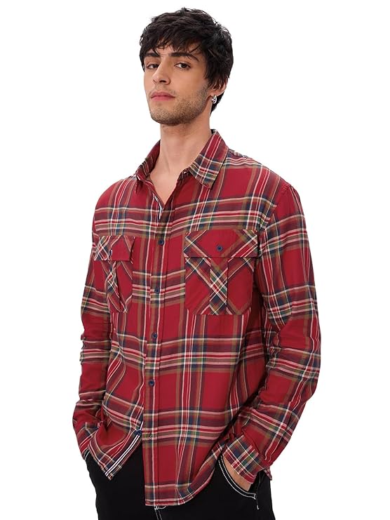 Tartan Men and Boys Long Sleeves Collared Neck Button Front Regular Fit Cotton Shirts