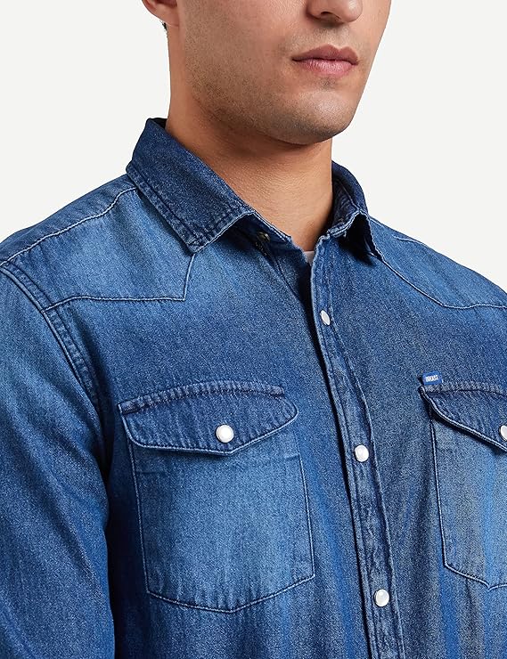 Men's Solid Slim Fit Denim Shirt