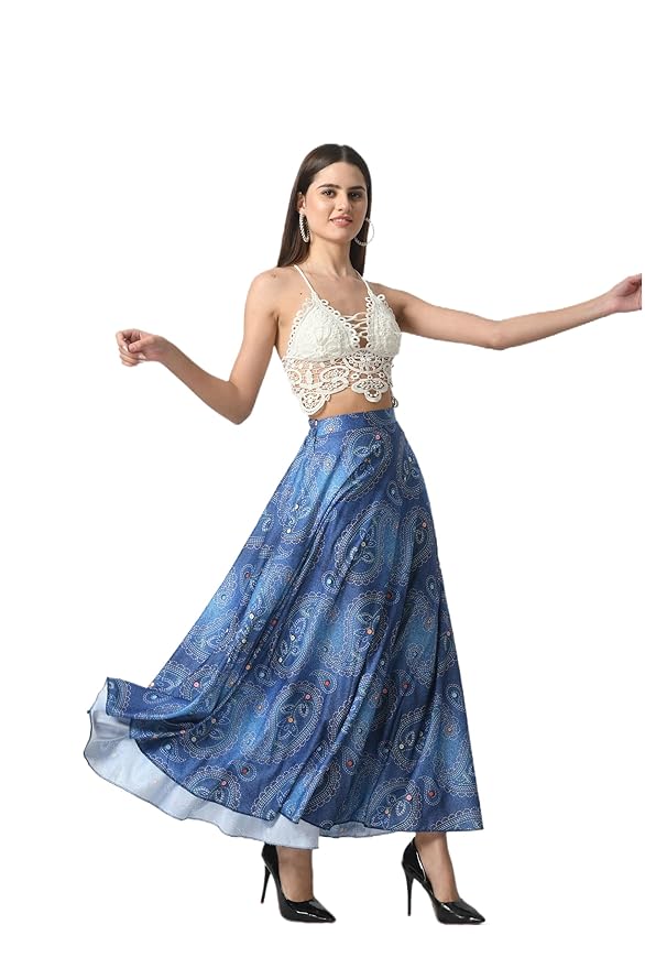 Every festival and every wedding in India is rejoiced by women wearing their dream lehenga. Our silky lehengas are made using a very soft polyester fabric with a beautiful shine. Our lehengas are lined with an equally soft crepe; hence, the skirt falls and swirls perfectly with every wearer's move. The waist has a nada to adjust your waist and the skirt edges are laced with a fine golden lama fabric which enhances the entire lehenga and gives it a very festive look.